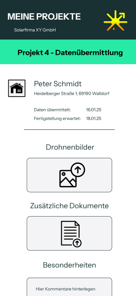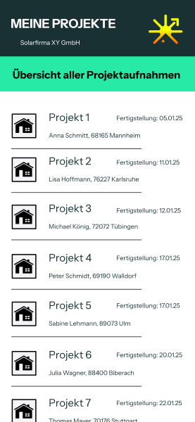 Dabei setzen wir bewusst auf maximal zwei Betriebe im Umkreis von 25 Kilometern, mit denen wir bereits regelmäßig zusammenarbeiten. Sie kennen unsere digitale Planung, arbeiten sauber, zuverlässig und können deine Anlage dank unserer detaillierten Datenaufnahme präzise und zügig umsetzen.